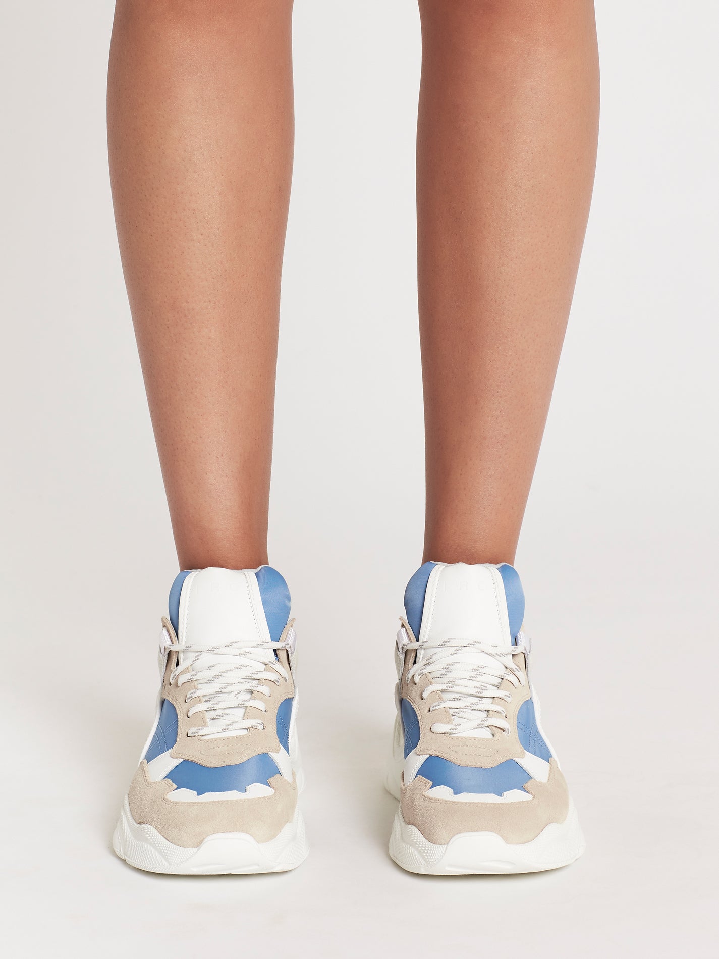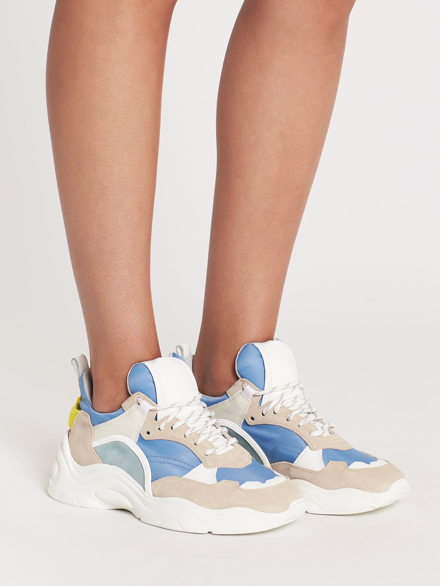 The dad sneaker trend shows no sign of slowing down, so jump on board with the Iro Curve Runner. This ultra chunky sneaker in the colour-way blue features an oversized tongue, thick rubber sole, tie up laces and has been constructed with a soft leather, breathable mesh and is finished with suede details.