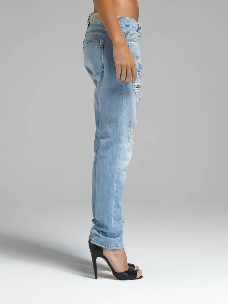 The amazing Mandy Destroyed Garcon boyfriend jean from IRO Jeans have a low slung waist, a low rise and twin pocket detailing at the back. These jeans feature bleached out details across the knee and are destroyed along the thighs. Finished off with silver hardware.