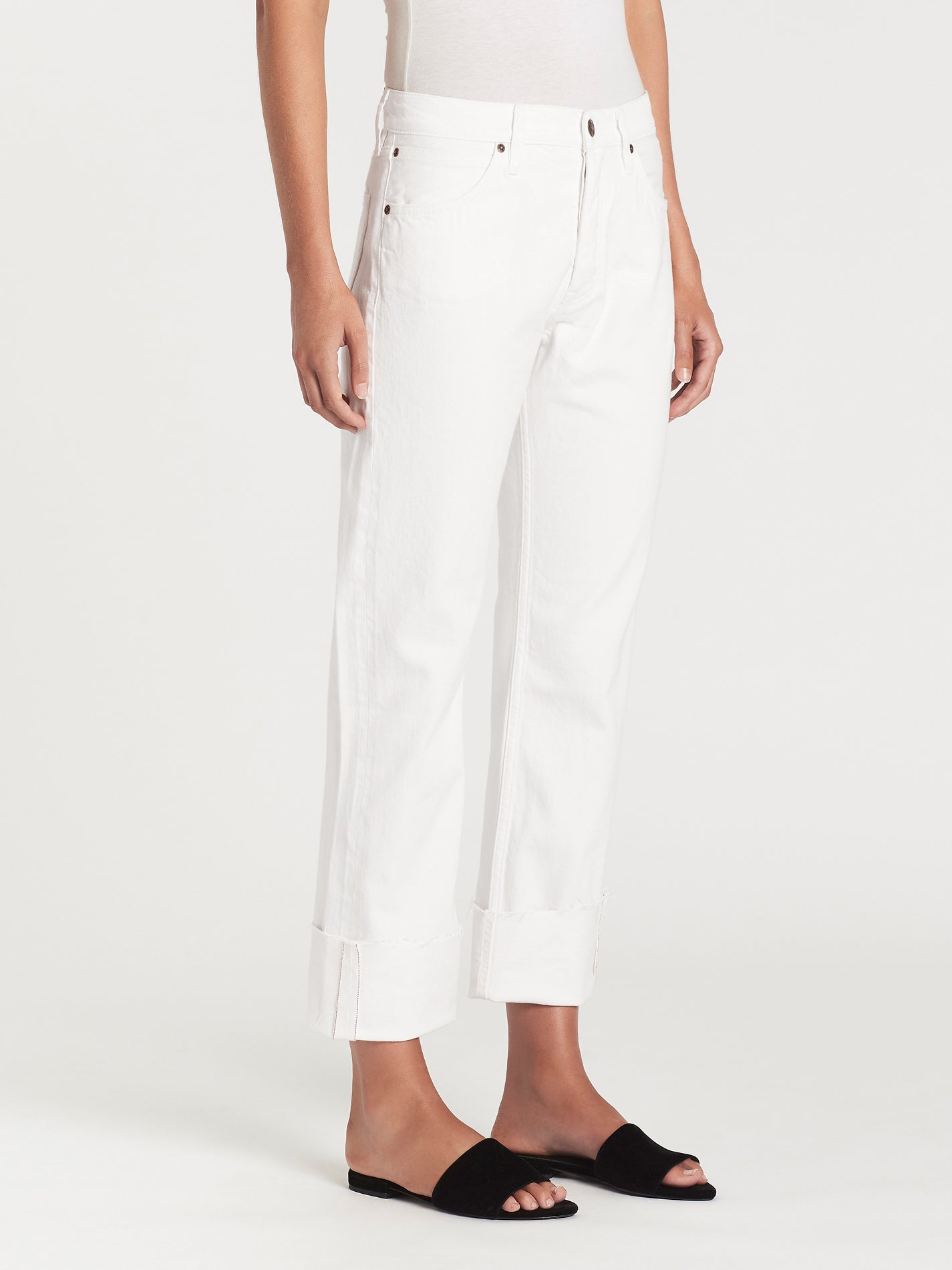 Walk that walk and stay on trend in the M.i.h Phoebe Jeans this season. With a style reflecting an ultra relaxed fit and falling onto the hips, the deep and exaggerated cropped cuff portrays the signature M.i.h effortlessly cool look. The Phoebe Jean is composed of 100% Cotton that is soft to the touch and has a lightweight feel.