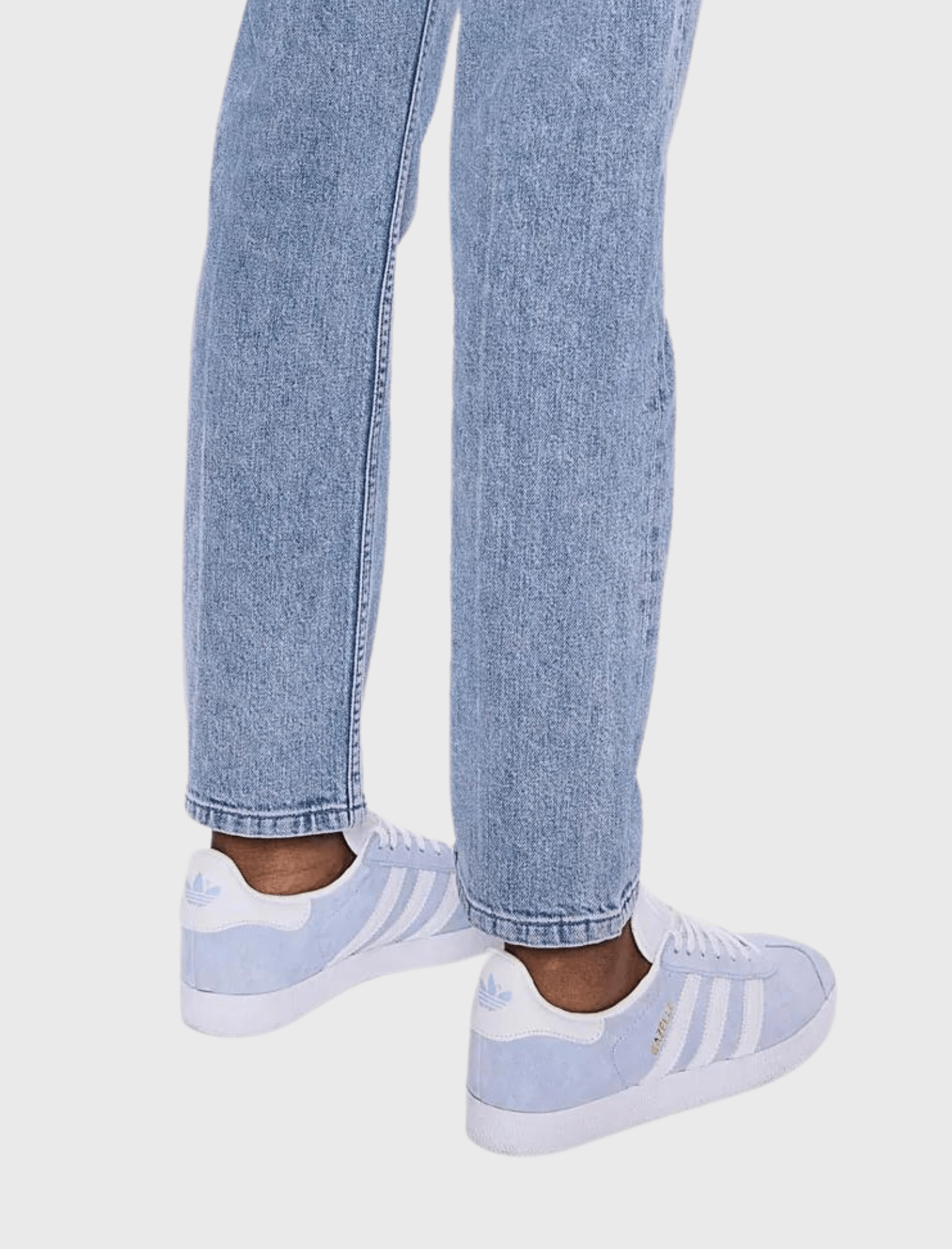 Have you been searching for the perfect pair of jeans? High and Low, Near and Far, Here and There... Your search is over. Mother Denim brings you The High Waisted Rider Ankle Jean in Salt of The Earth. These perfect high-waisted straight leg jeans have an ankle-length inseam and a clean hem. A classic light blue wash, these jeans are crafted from semi-rigid denim, with whiskering and fading to create a vintage look. These rigid jeans demand hard work, and you will need to break them in. That's not a problem for you - you've come this far already.