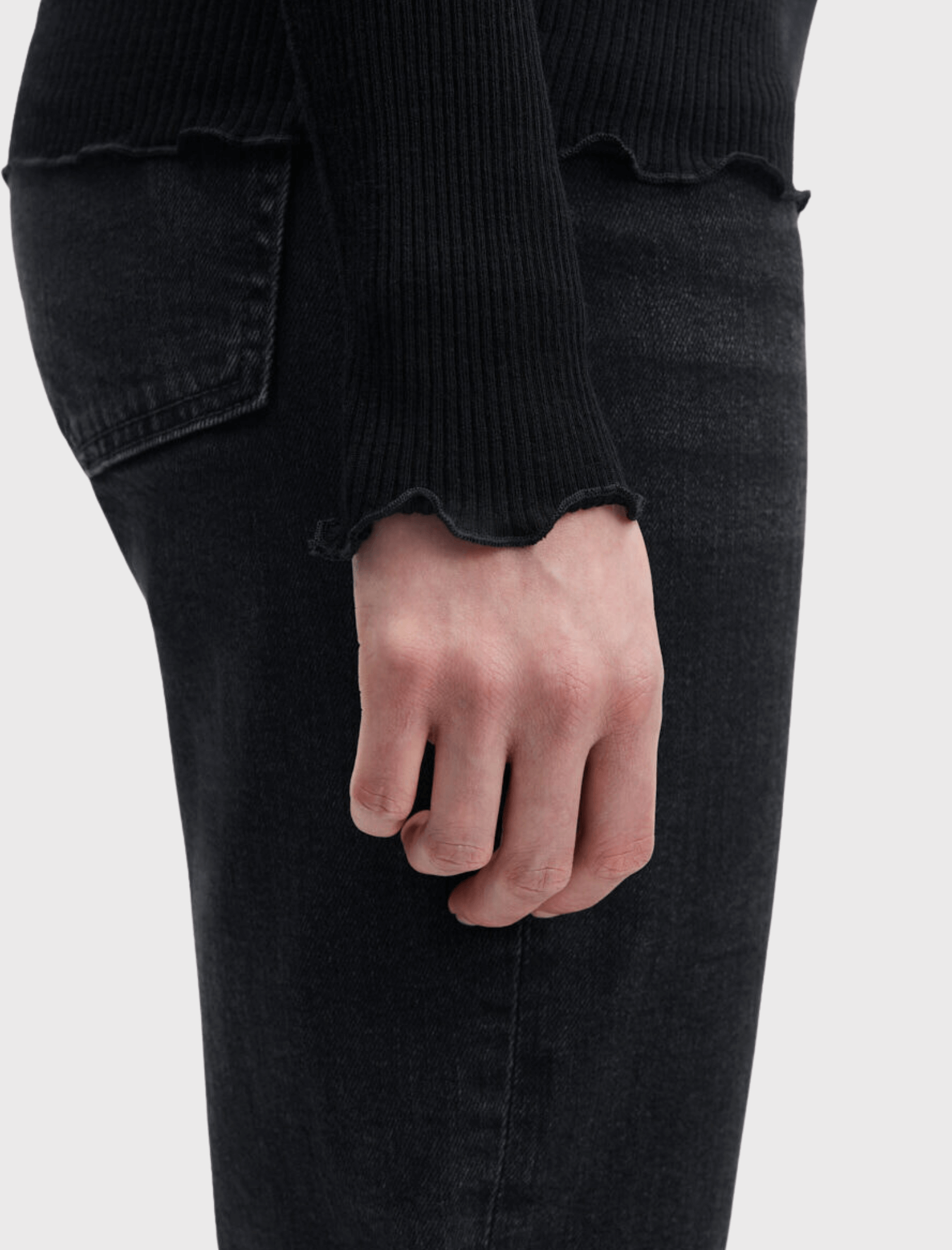 The Samsoe Samsoe Samsoe Samsoe Doudo Long Sleeve Rib Top in Black is a fitted style with lot's of stretch