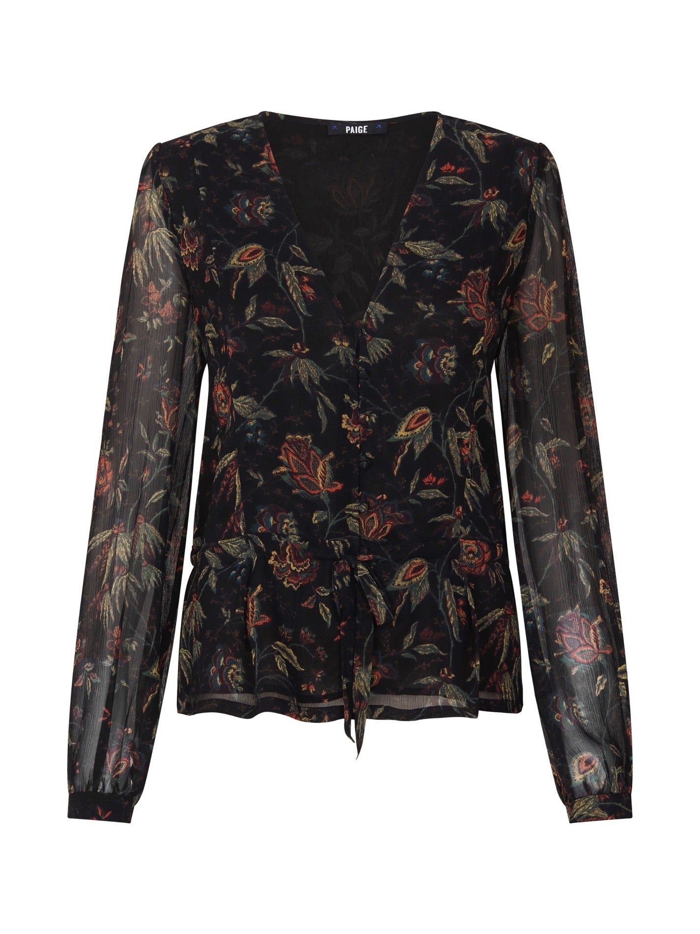 The Paige Carmona Top in Black / Golden Sky is made from 100% Silk Lining: 100% Polyester