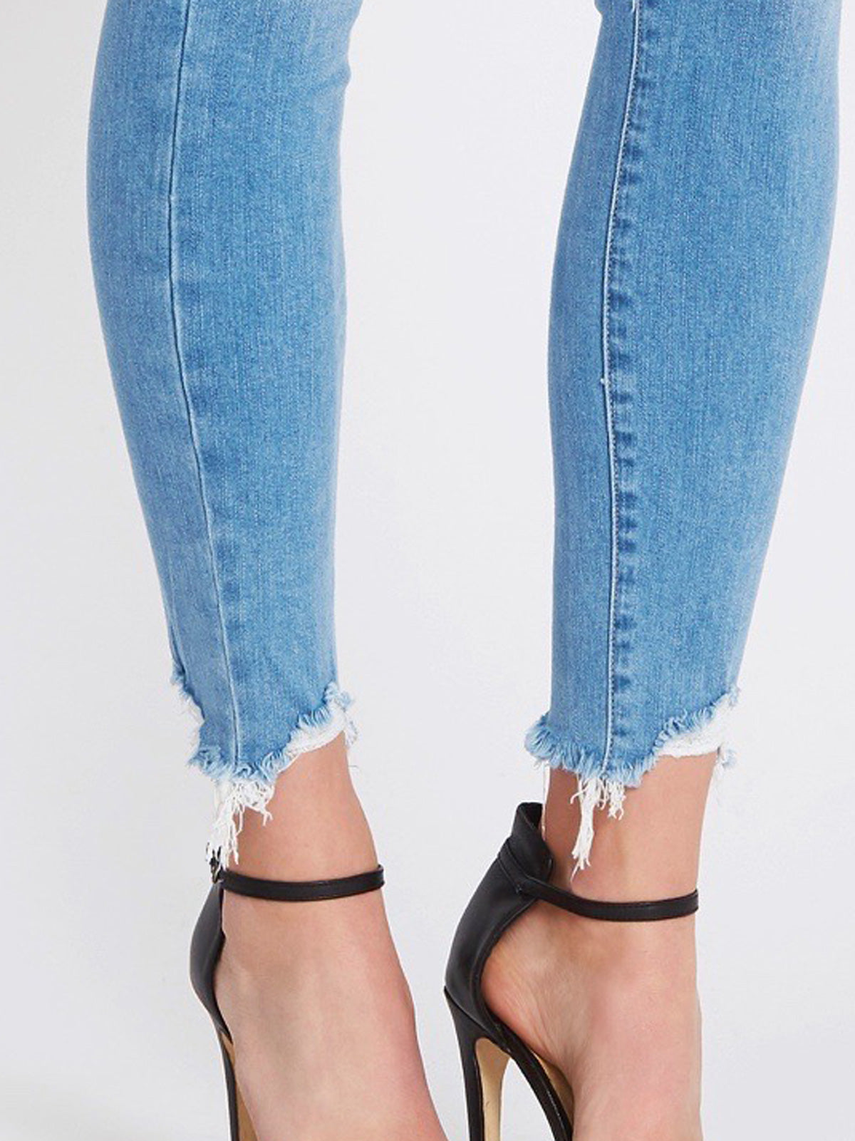 The Paige Hoxton Ankle Crop Jean in Alameda are the perfect classic skinny jean to add to your denim collection. Constructed from a stretchy cotton blend these mid blue mid rise jeans feature shiny black hardware, a single button zip fly closure, whiskering along the waist, subtle fading through the leg and distressed cuff detail.