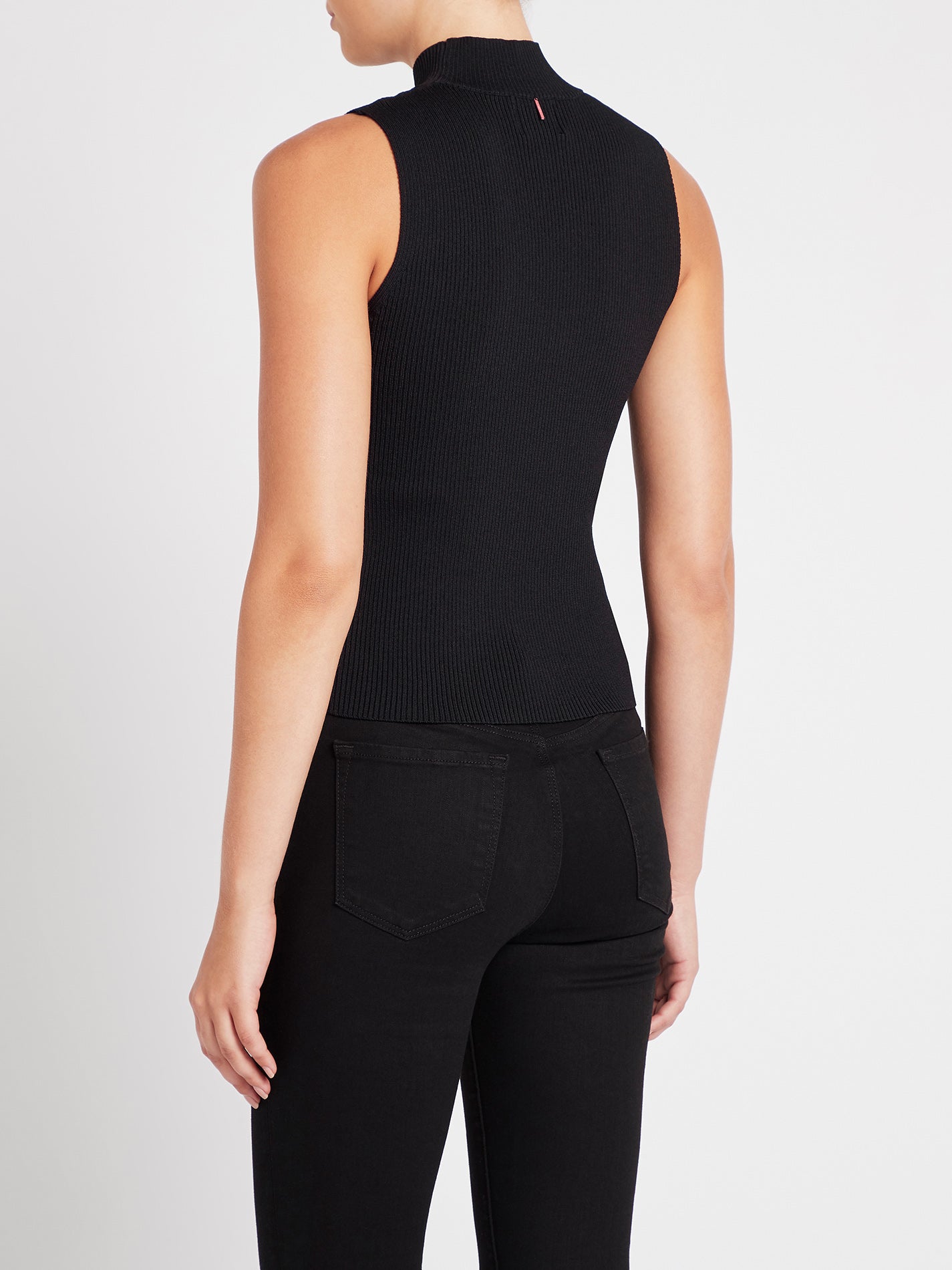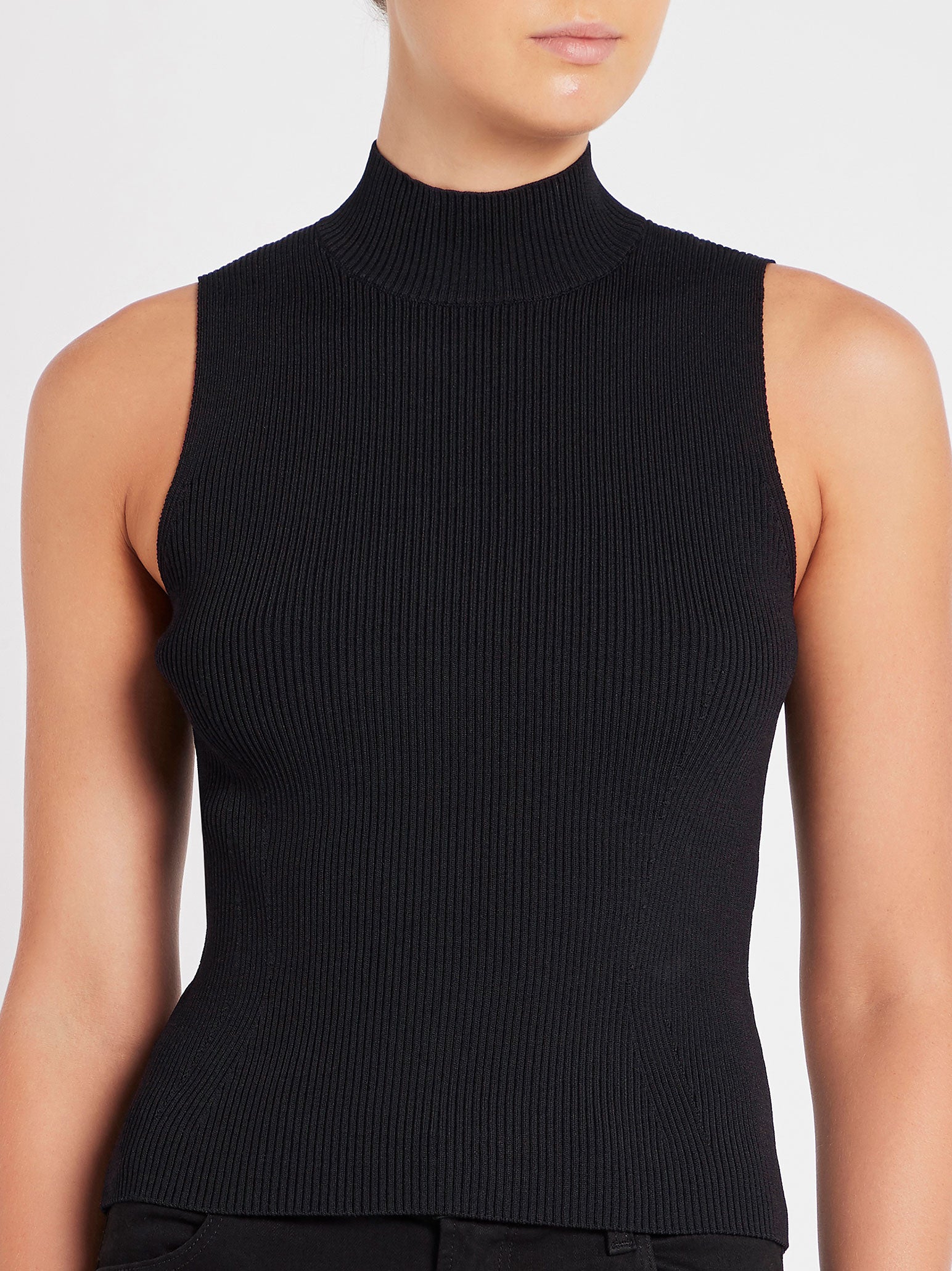 Evoke comfort and style into your core basics this season with the Astrid Knit Top in Coal by Misa Los Angeles. This versatile sleeveless, rib knit is fitted and features a mock turtleneck and can be teamed with your wardrobe favourites such as denim and playful skirts.