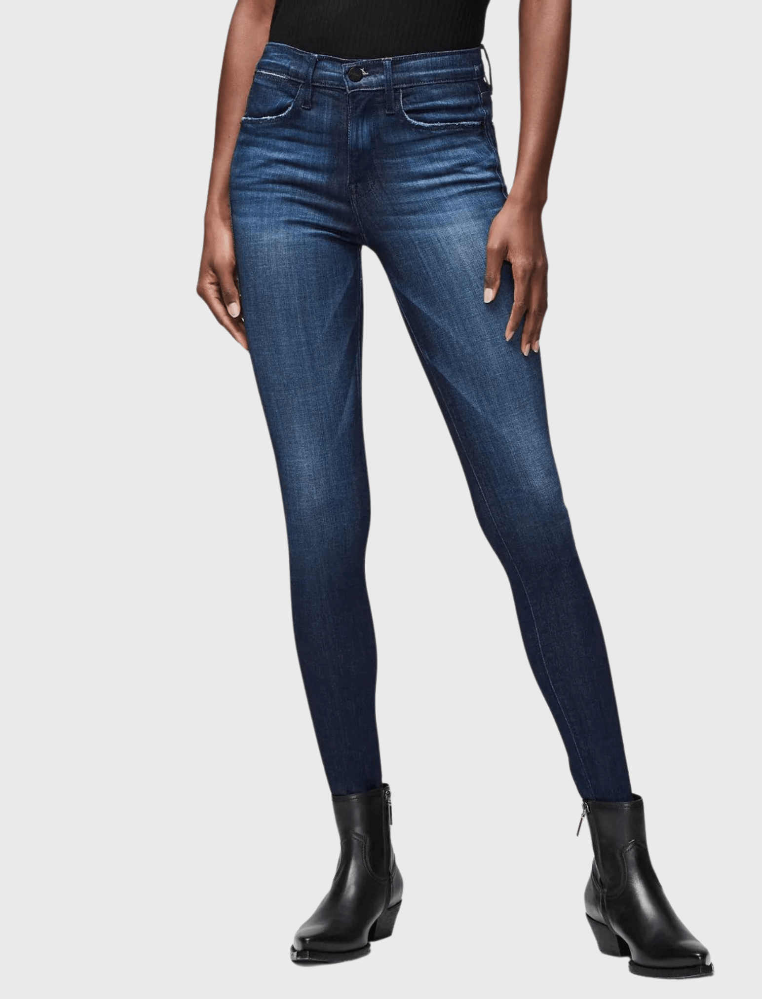 Frame Denim's Le High Skinny Jean in Disco is your classic dark indigo washed skinny jean. With a high waist and clean lines this flattering style is designed to sit at the small of the waist creating a flattering form-fitting silhouette. The stitching is tonal along with the hardware creating a sophisticated and clean look. With slight whiskering across the thighs these jeans are made from a premium denim fabric that feels soft and comfortable on the body while holding you in place.