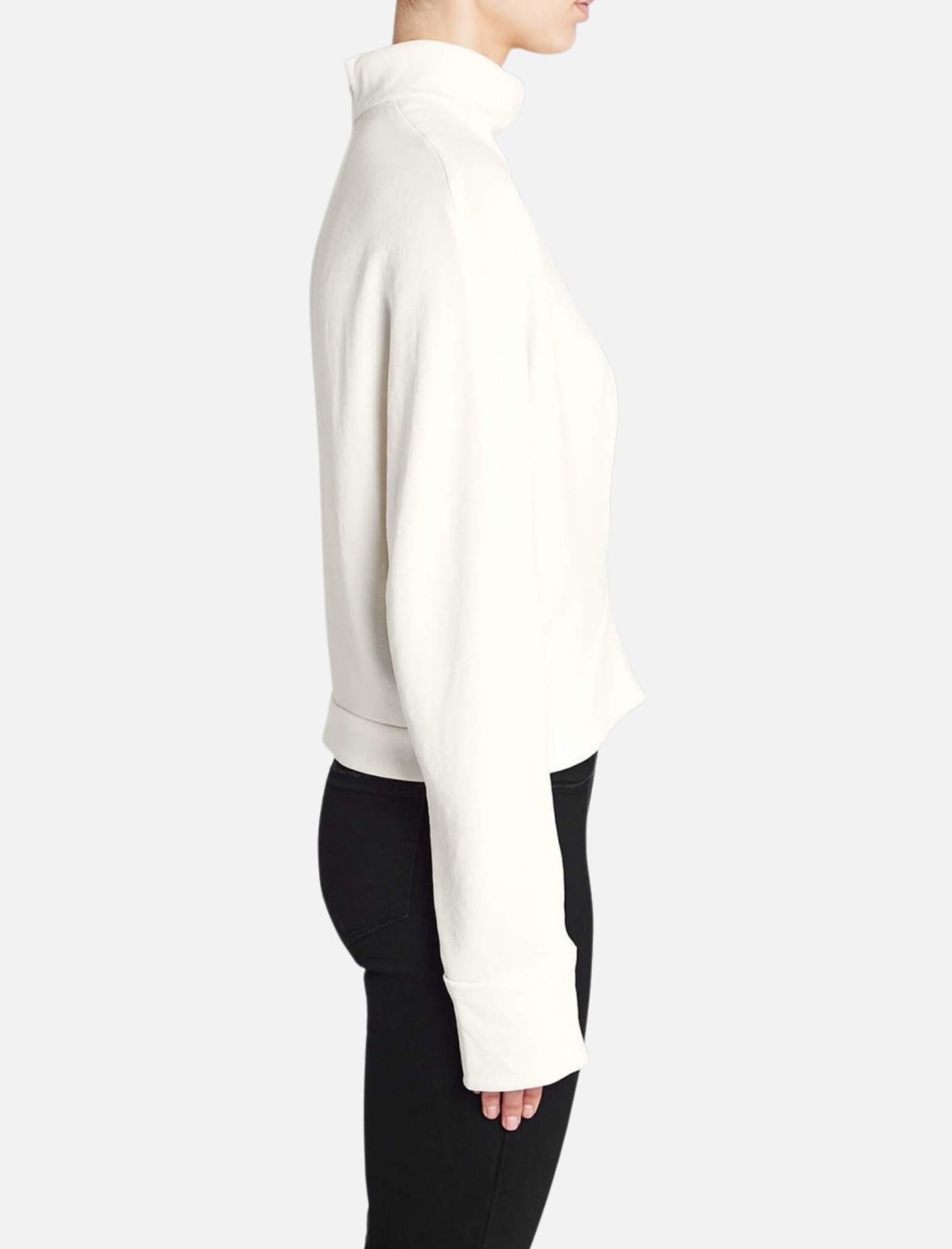 The Greta Top from french fashion brand IRO is the embodiment of luxury sophistication. Crafted from a slouchy silhouette with a high neck for extra coverage, this chic top is finished with a hidden back zip and long dolman sleeves, with a centre pleat to add that extra touch of elegance. Perfect for those who appreciate high-end design.