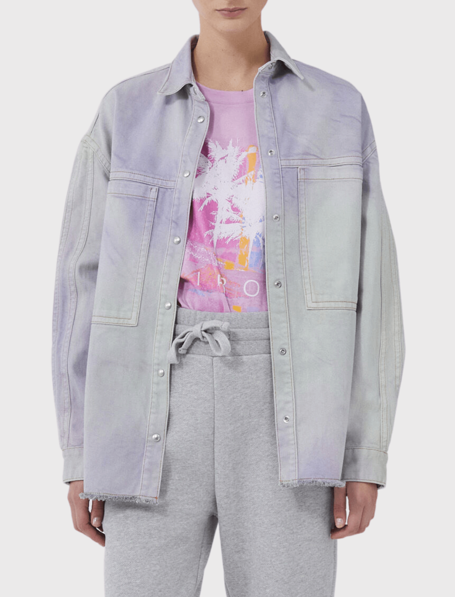 This acid wash meets tie dyed casual denim jacket is a the fun pop of colour you need in your transseasonal wardrobe. The Nayoh Jacket from IRO is an oversized shacket with a shirting collar, dropped sleeve, buttoned cuffs, two breast patch pockets and visible topstitching. Layer over a fresh white tank and your favourite straight leg jeans for an 80's rock inspired weekend look.