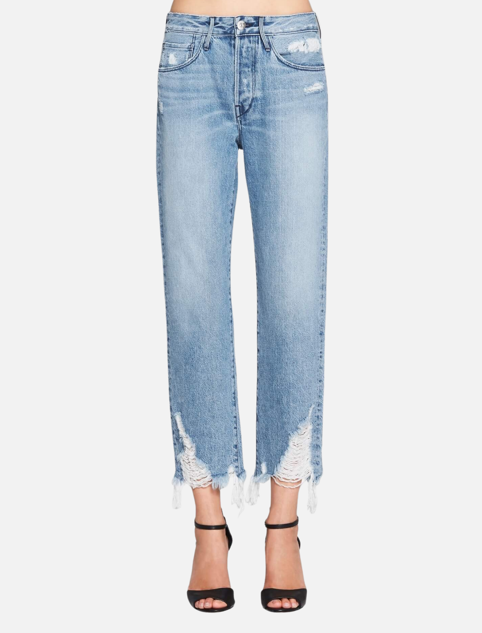 For the ultimate easy -going weekend jean with an ultra cool twist the 3×1 W3 Higher Ground Boyfriend Crop Jean in Dover is the perfect choice. These high waisted washed cotton jeans feature a button fly, relaxed straight leg with a frayed cropped finish and heavy distressing on the hem and and front pocket. Team these bad boys with your favourite crisp cotton shirt for easy breezy off duty style.