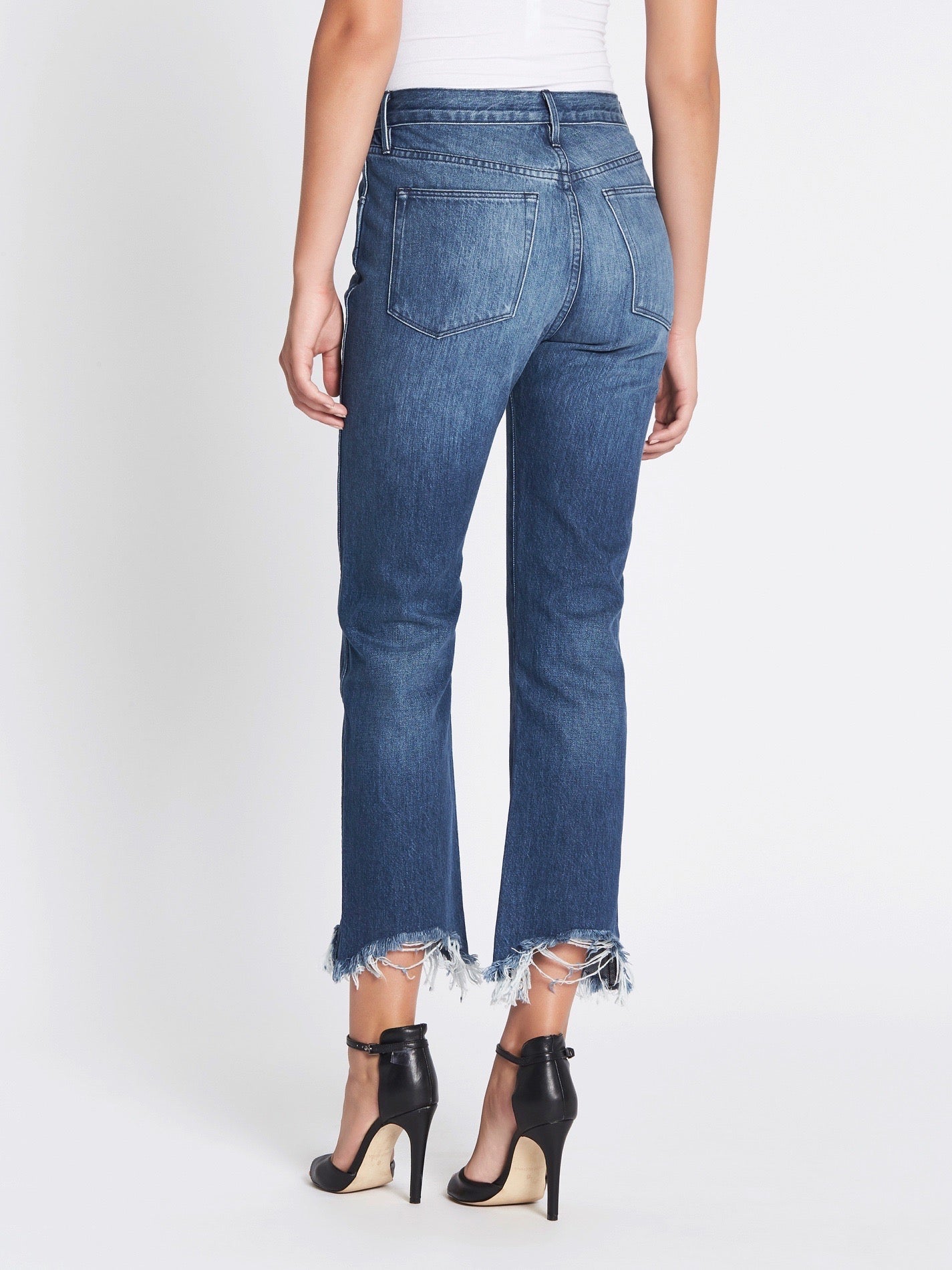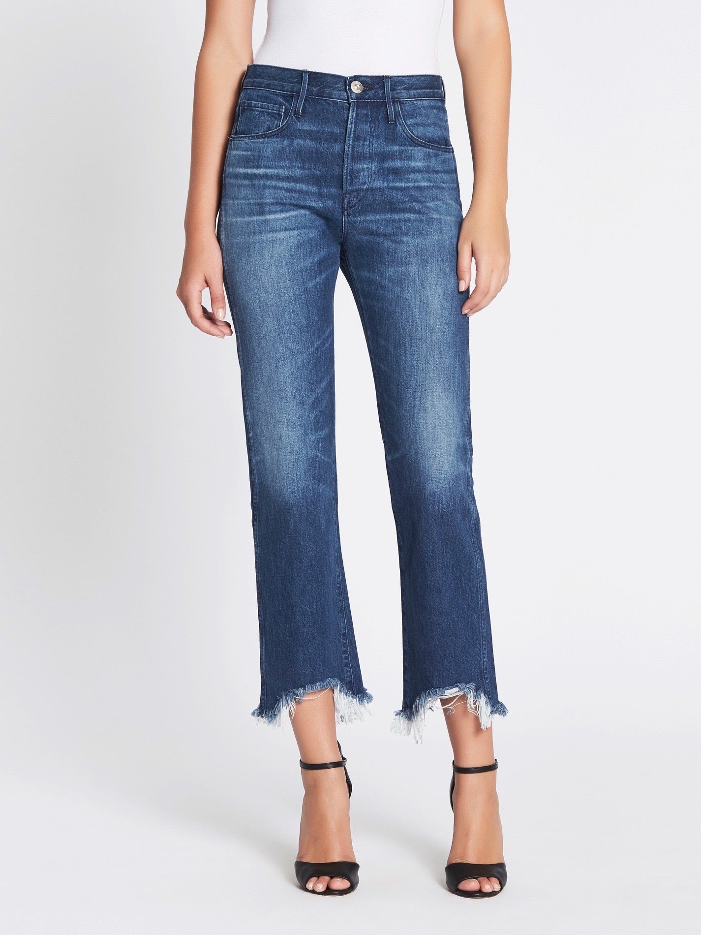 For the perfect blue jeans with a modern twist look straight to the 3X1 Shelter Austin Crop in Raku. Constructed from 100% cotton these rigid mid blue colour jeans feature a high rise, with 5 pockets, button fly with silver hardware. Finished with un-even raw frayed cuffs for an ultra cool hand cut feel. Team yours with your favourite sling back heel and a simple white tee.