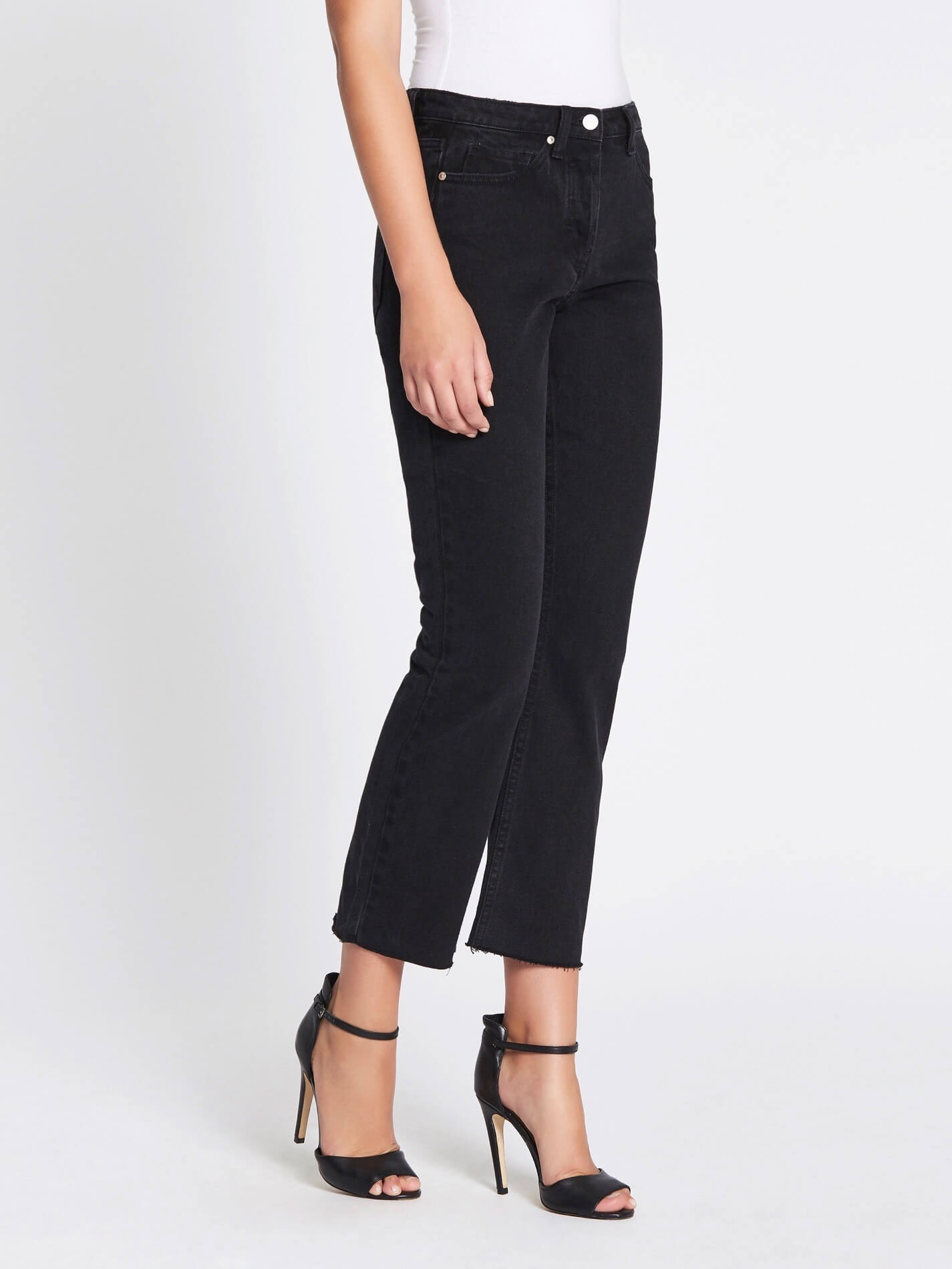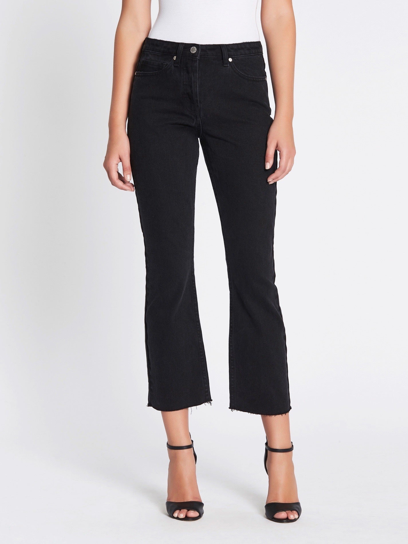 The Camilla and Marc Neve Jean in Black is the perfect vintage inspired cropped jean to add to your wardrobe this season. Constructed from 100% cotton these cool girl jeans feature a subtle flare, brushed silver hardware, a button fly and are finished with a raw cut cropped hem. Please note, this style is rigid and will feel extremely firm on first try on, as it will mould and soften to the body during and after wear.