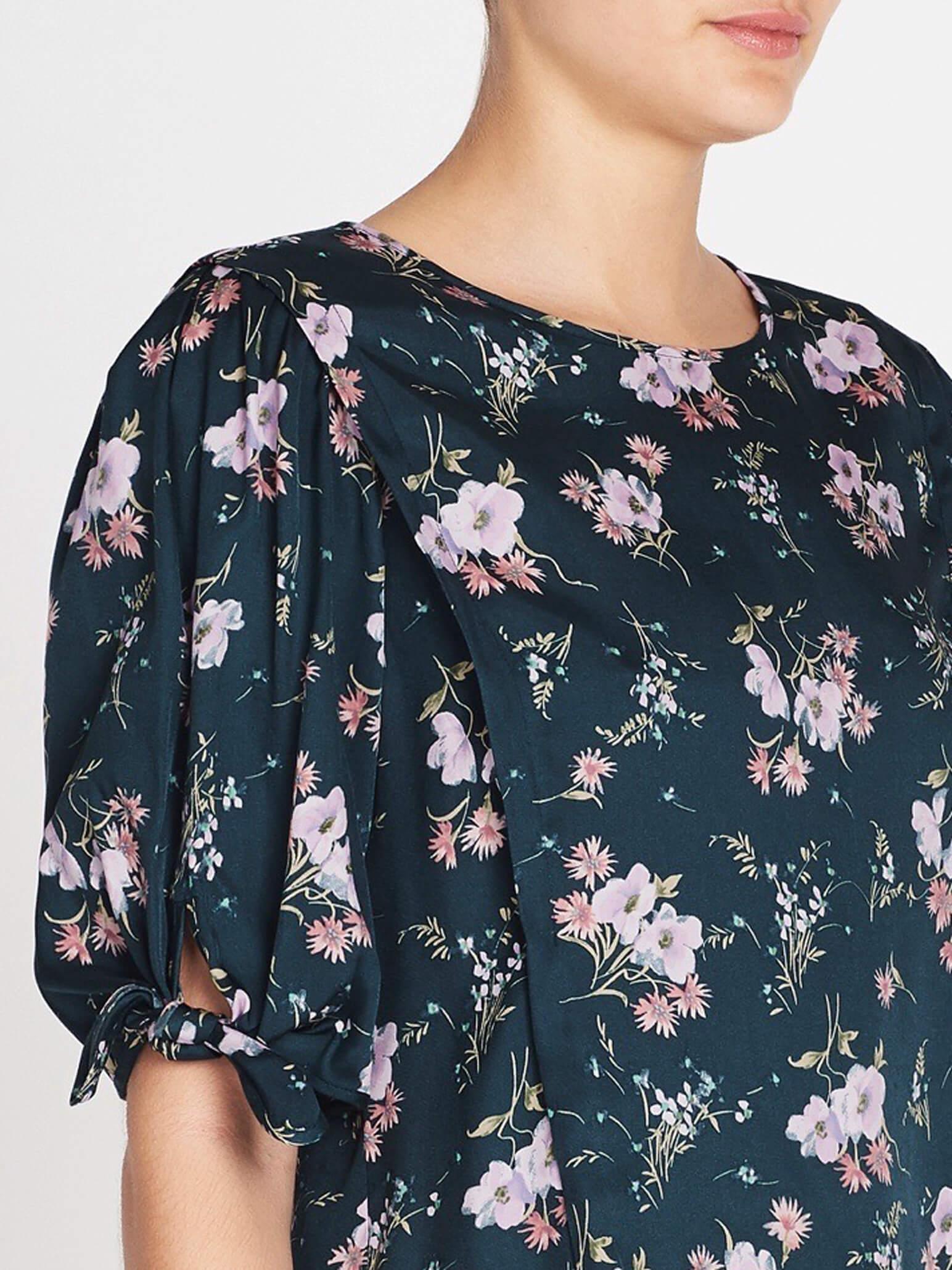 The Rebecca Taylor Emilia Print Silk Twill Tie Top in Teal Combo is made from 55% Silk 45% Viscose