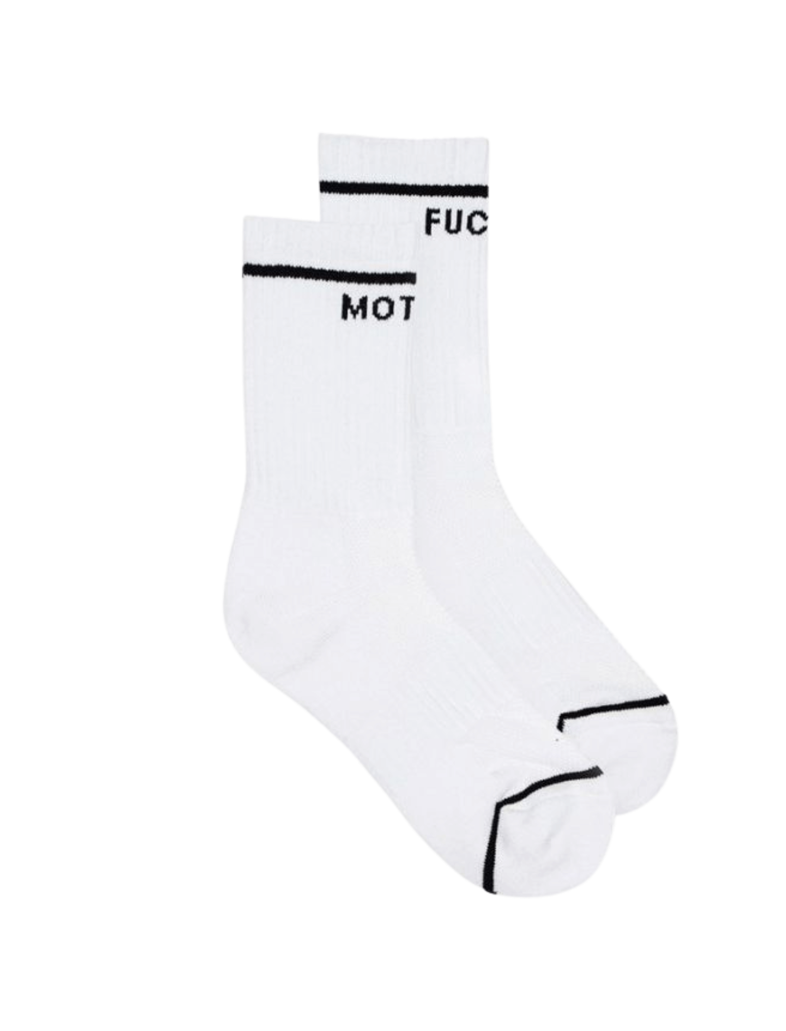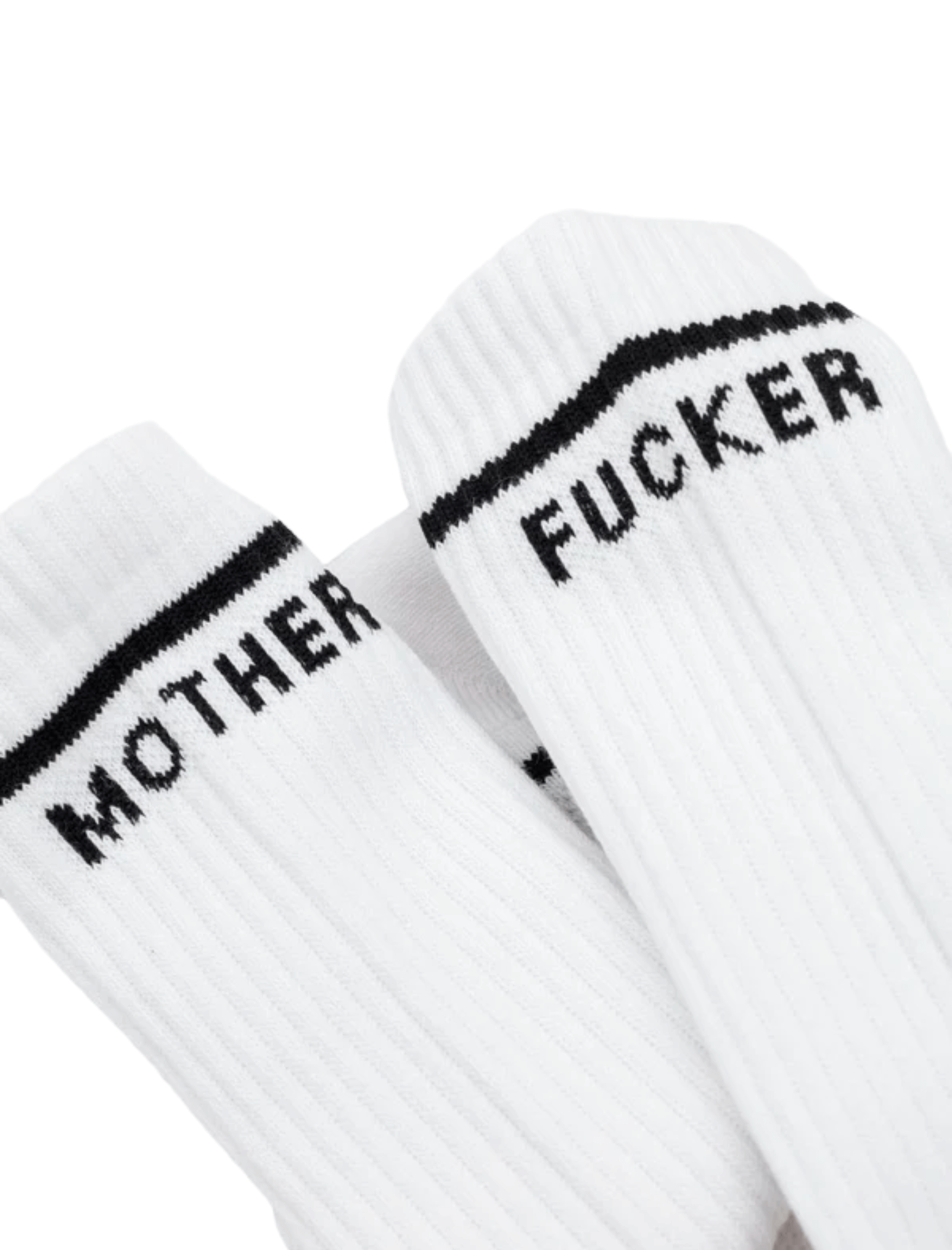 Tell everyone who’s boss in the MOTHER Cold Feet tube socks with bold black lettering. These retro styled calf length socks will have everyone putting a dollar in the swear jar just from admiring your totally styling toes.
