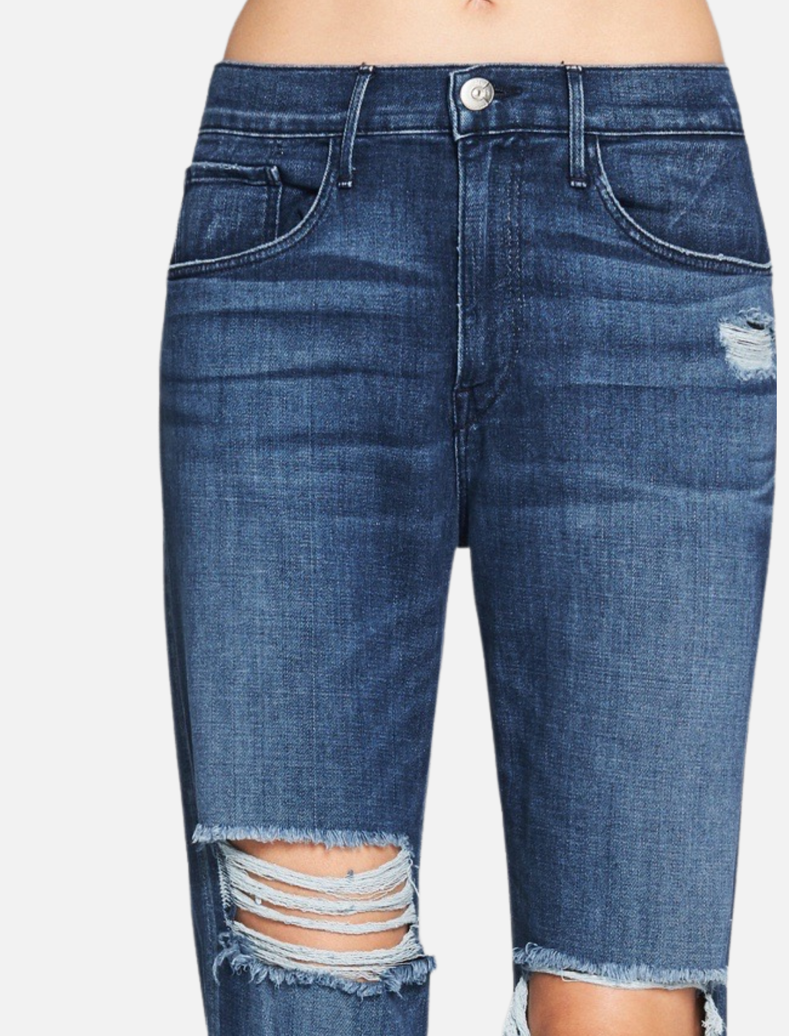 The 3x1 Slim Boy Toy Jean in Chet are a high rise jean with relaxed crotch, thigh and a slim straight leg. Constructed in a super soft blue denim these jeans feature large distressed holes at the knee and other general distressing throughout. Team with your favourite white tee for easy off duty style.
