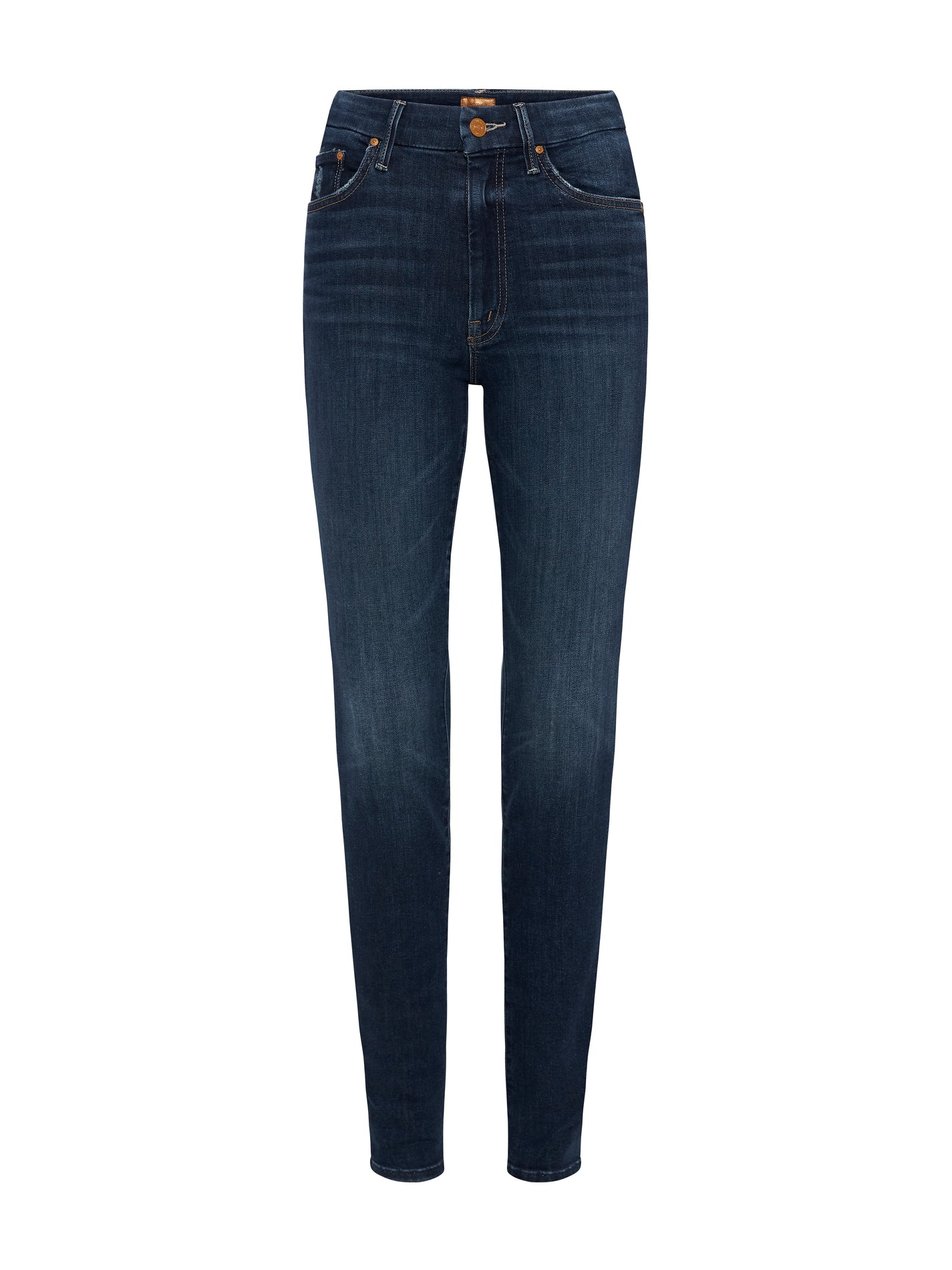 This is it - Mother Denim's High Waisted Looker Jean is the most classic high waisted skinny Jean on the market. Made in California this jean is a cult favourite loved the world over for it's butter soft fabric and flattering cut. A full length skinny jean with a clean hem the wash "Teaming Up" is the perfect dark denim hue. Finished with some light whiskering across the thighs and a little fading to great that worn in look these jeans have copper toned hardware and the classic subtle M pocket embroidery.