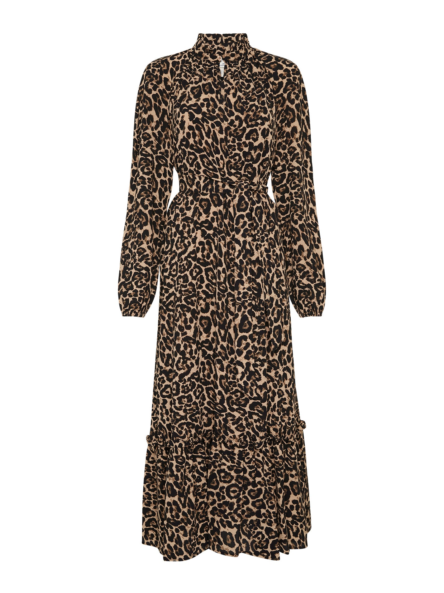 The long sleeved midi dress is a must have addition to your wardrobe this season and the Baum Und Pferdgarten Antoinette Dress in Natural Leopard is the perfect piece. Constructed from a recycled polyester this dress features a high round neckline with keyhole button closure, a tie cinch waist, long sleeves with an elastic finish and a tired gathered hem for a romantic finish. Team with heeled black boots and a cross body bag to complete the look.