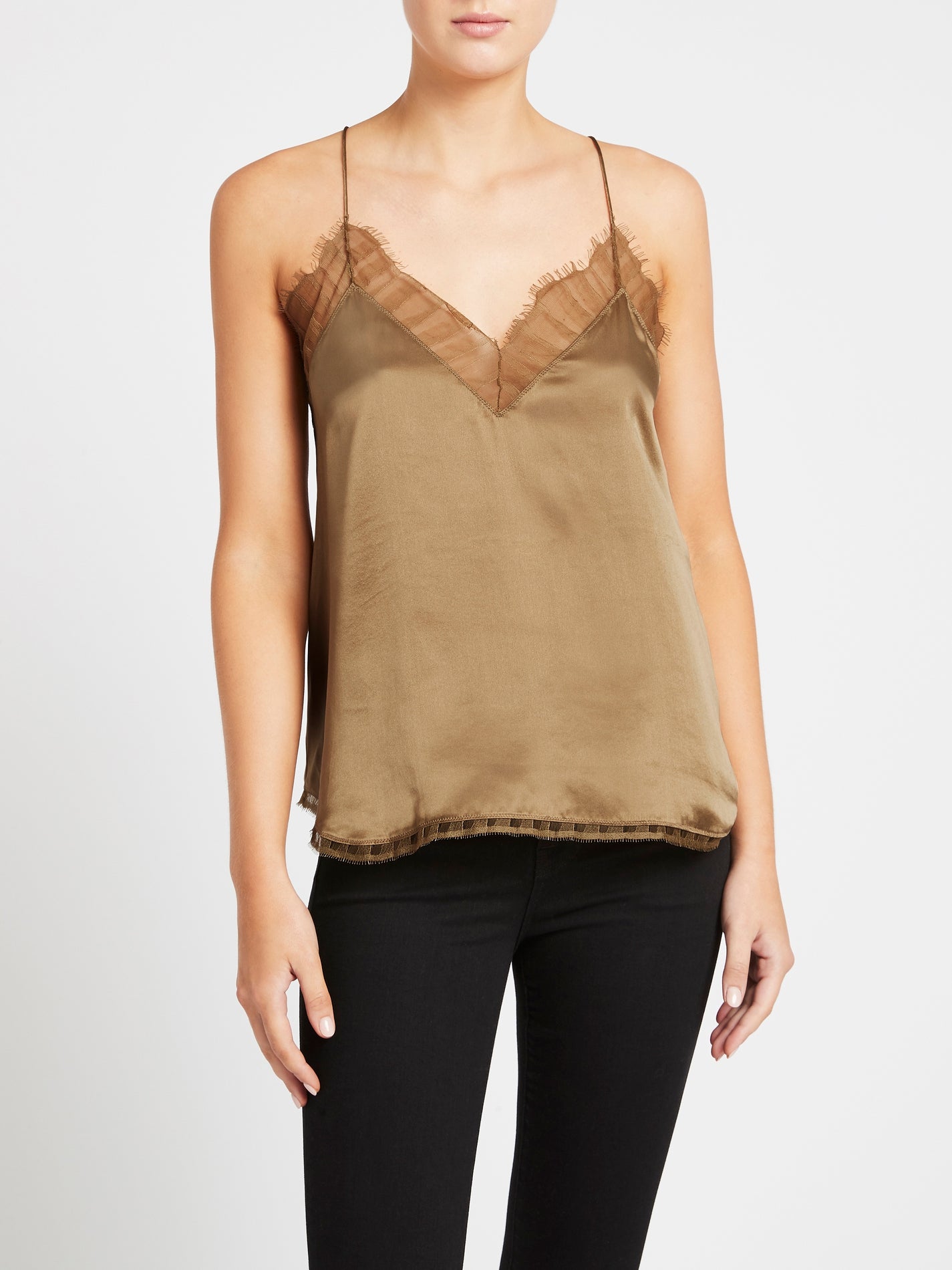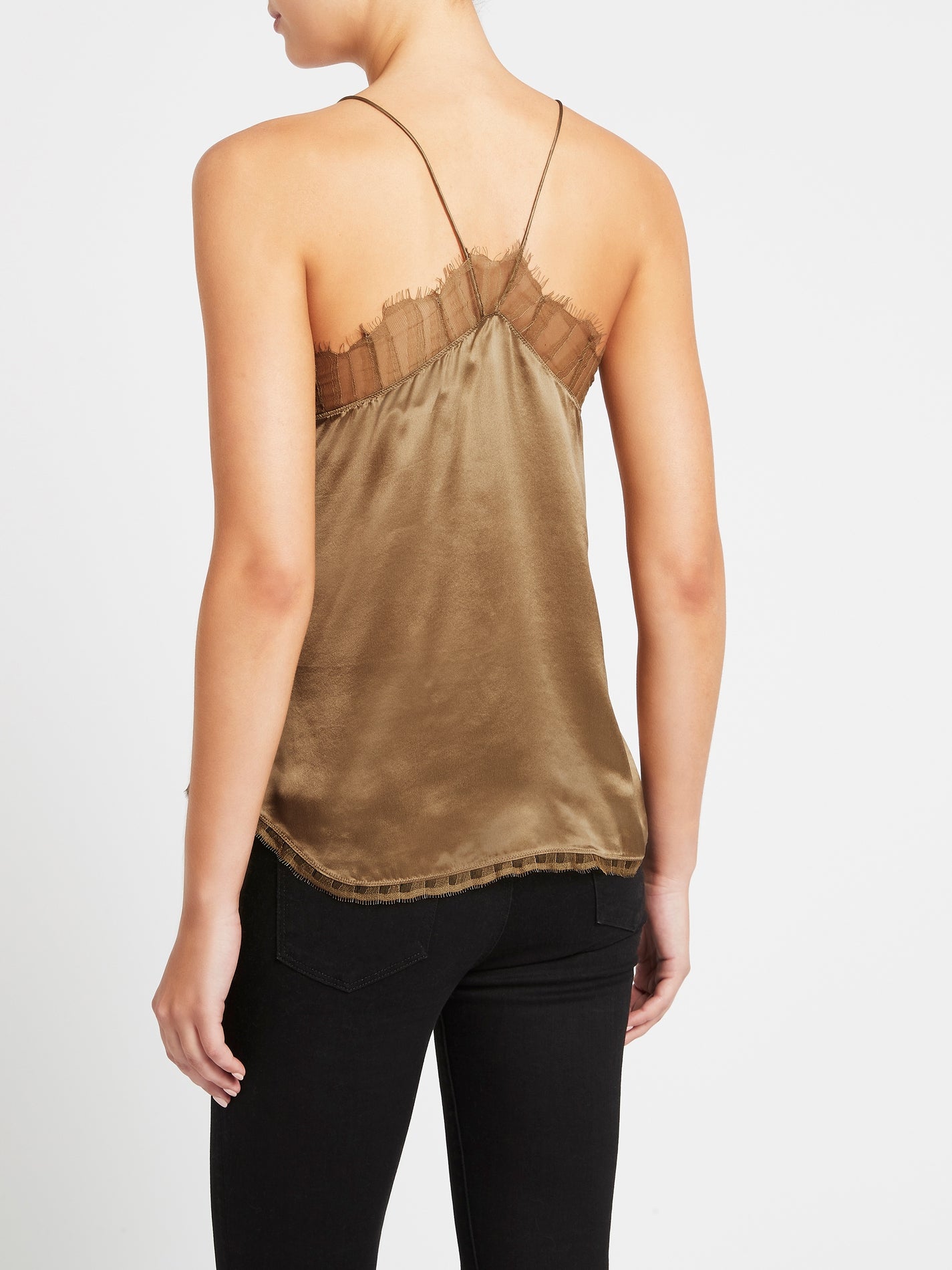 The IRO Berwyn Cami in Olive is made from 100% Silk with 100% Polyamide lace