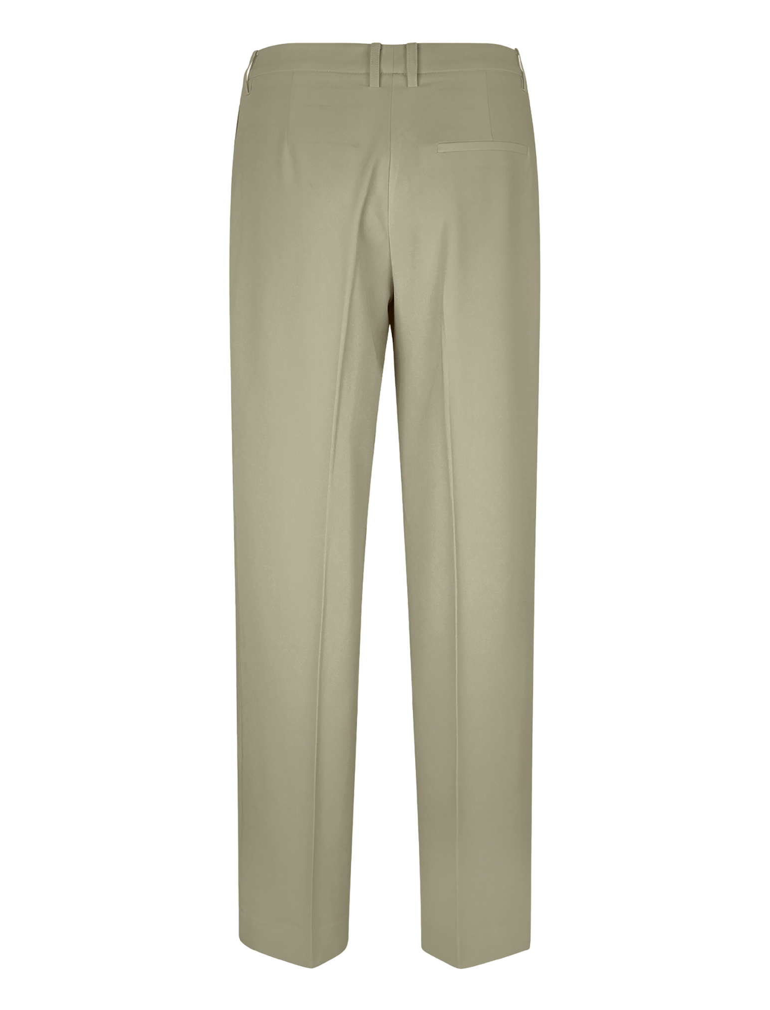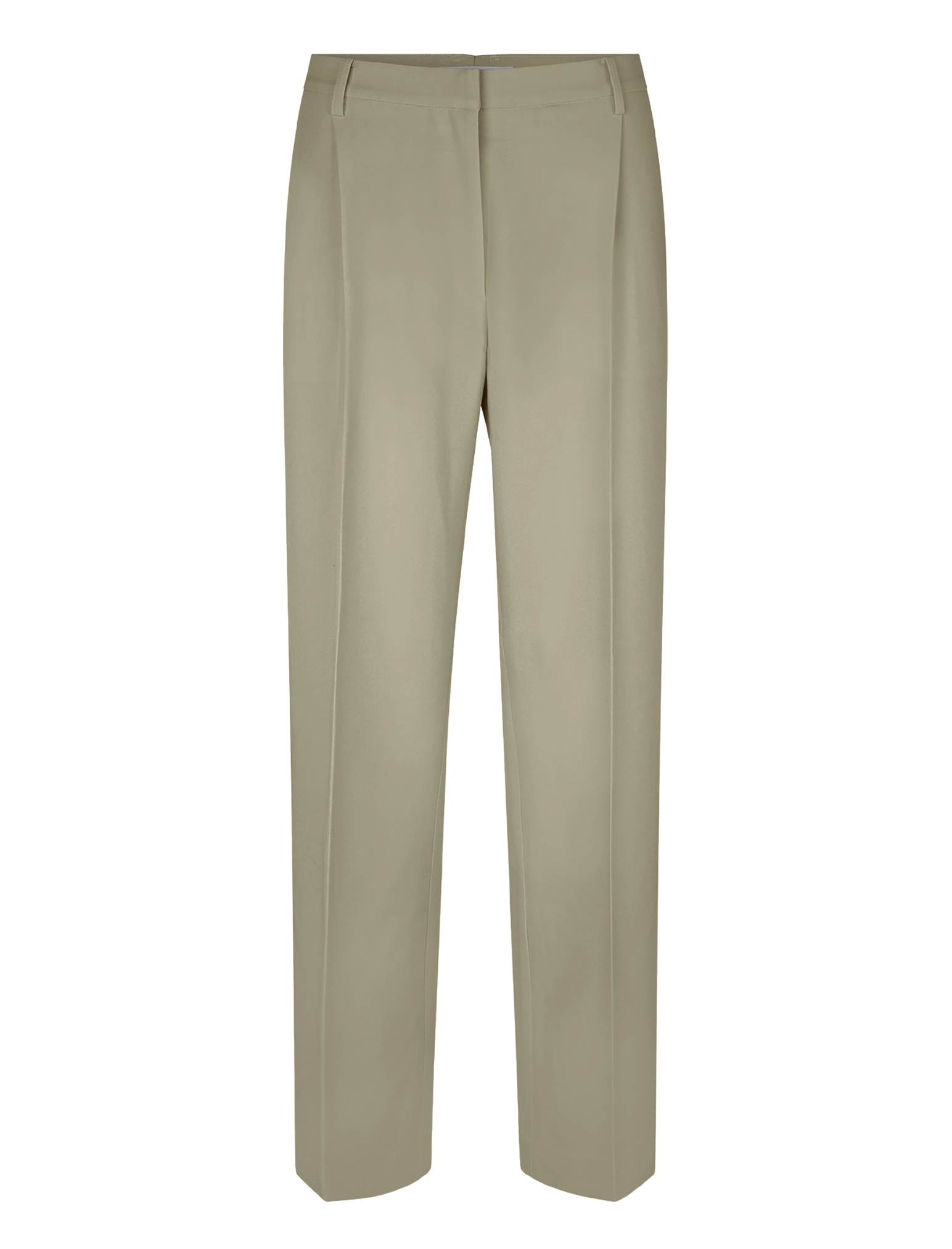 The Samsoe Samsoe Ramona Trousers in Silver Sage is made from 37% Polyester, 36% Recycled Polyester, 20% Viscose, 7% Elastane